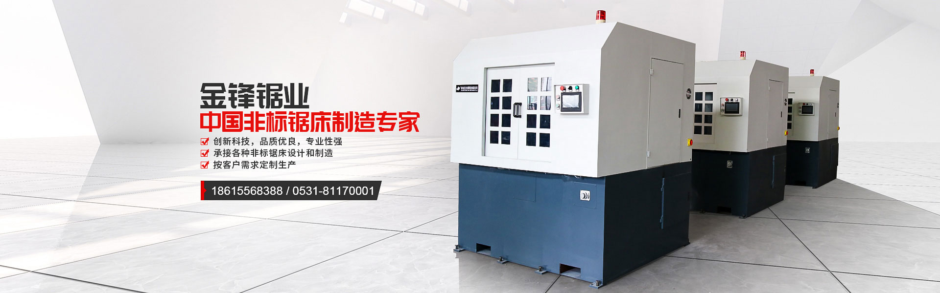 濟(jì)南北方金鋒鋸業(yè)有限公司,是鋸床生產(chǎn)廠家。2003年建廠,具有多年生產(chǎn)金屬帶鋸床的經(jīng)驗(yàn),擁有自主的開發(fā)、設(shè)計(jì)和制造能力,生產(chǎn)的金鋒系列臥、立式金屬帶鋸床,性能穩(wěn)定,暢銷國內(nèi)外。